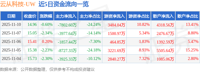 近5日资金流向一览见下表: