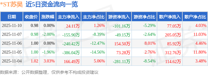 11月10日的资金流向数据方面,主力资金净流入24.11万元,占总成交额1.26%,游资资金净流出101.16万元,占总成交额5.29%,散户资金净流入77.05万元,占总成交额4.03%。
