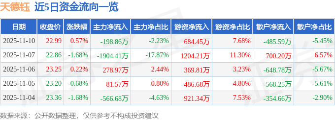 证券之星消息,截至2025年11月10日收盘,天德钰(688252)报收于22.99元,上涨0.57%,换手率2.14%,成交量3.9万手,成交额8916.98万元。