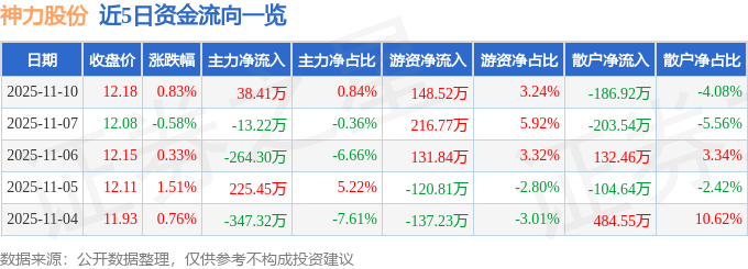 证券之星消息,截至2025年11月10日收盘,神力股份(603819)报收于12.18元,上涨0.83%,换手率1.73%,成交量3.76万手,成交额4584.96万元。