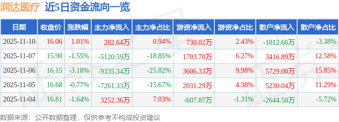 证券之星消息,截至2025年11月10日收盘,润达医疗(603108)报收于16.06元,上涨1.01%,换手率3.07%,成交量18.52万手,成交额3.0亿元。