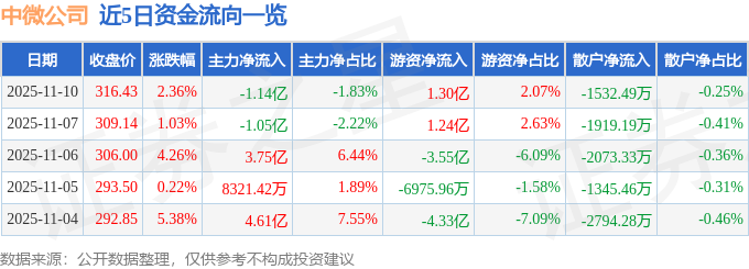 11月10日的资金流向数据方面,主力资金净流出1.14亿元,占总成交额1.83%,游资资金净流入1.3亿元,占总成交额2.07%,散户资金净流出1532.49万元,占总成交额0.25%。