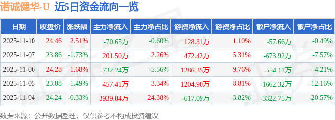 证券之星消息,截至2025年11月10日收盘,诺诚健华(688428)报收于24.46元,上涨2.51%,换手率1.8%,成交量4.84万手,成交额1.17亿元。