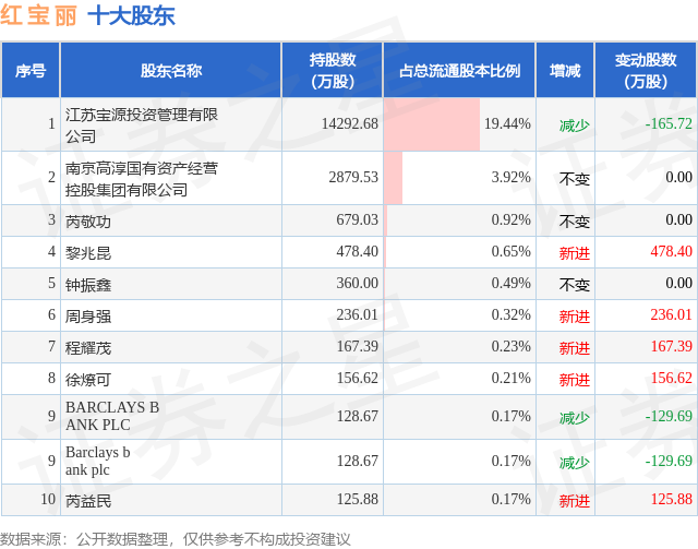 根据红宝丽2025年三季报公布的十大股东详情如下:
