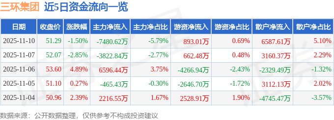 证券之星消息,截至2025年11月10日收盘,三环集团(300408)报收于51.29元,下跌1.5%,换手率1.34%,成交量25.13万手,成交额12.93亿元。