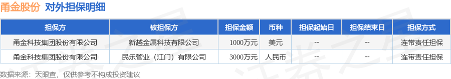 甬金股份11月7日披露2笔对外担保,被担保公司2家。对外担保明细如下表: