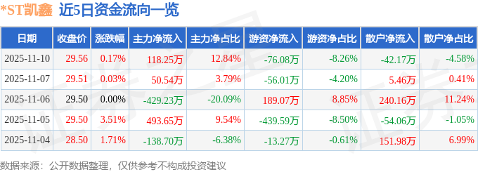 11月10日的资金流向数据方面,主力资金净流入118.25万元,占总成交额12.84%,游资资金净流出76.08万元,占总成交额8.26%,散户资金净流出42.17万元,占总成交额4.58%。