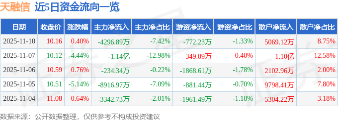 11月10日的资金流向数据方面,主力资金净流出4296.89万元,占总成交额7.42%,游资资金净流出772.23万元,占总成交额1.33%,散户资金净流入5069.12万元,占总成交额8.75%。