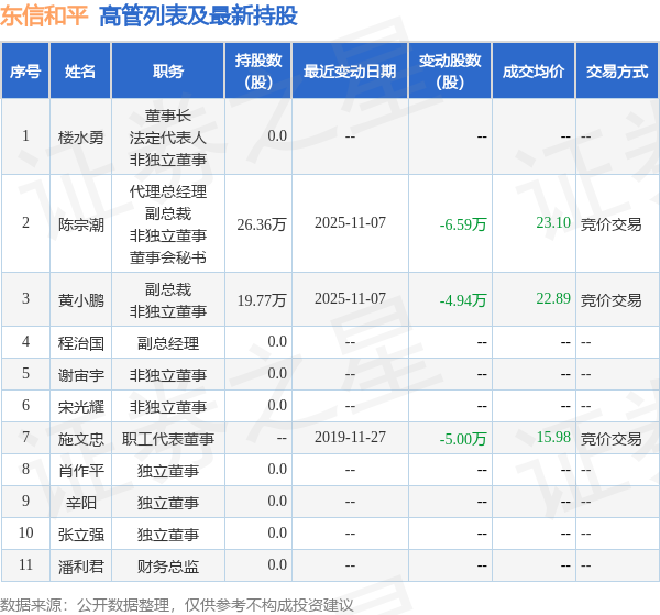 东信和平的高管列表及最新持股情况如下: