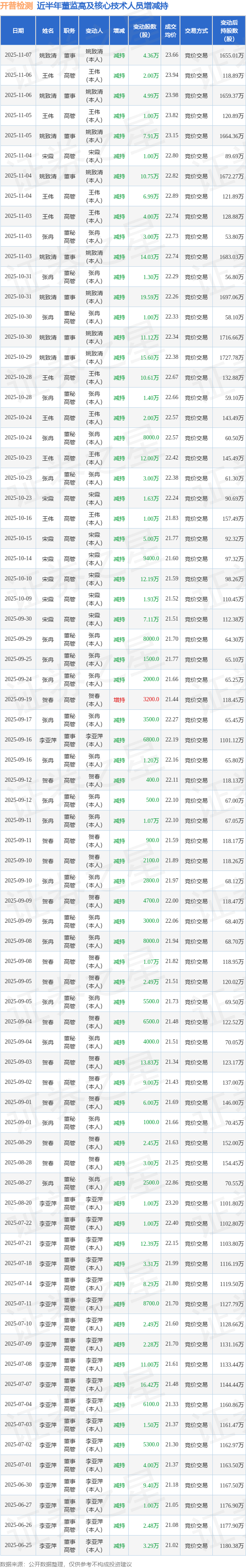 开普检测近半年内的董监高及核心技术人员增减持详情如下: