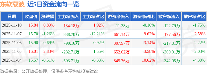 11月10日的资金流向数据方面,主力资金净流入134.18万元,占总成交额1.92%,游资资金净流出11.38万元,占总成交额0.16%,散户资金净流出122.79万元,占总成交额1.75%。