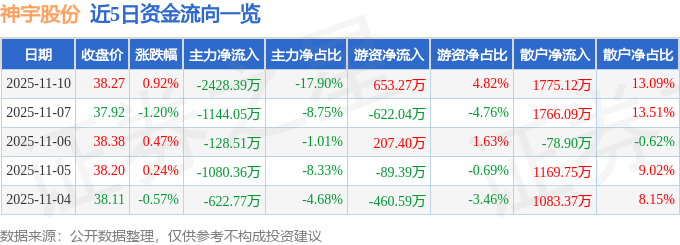 证券之星消息,截至2025年11月10日收盘,神宇股份(300563)报收于38.27元,上涨0.92%,换手率2.87%,成交量3.56万手,成交额1.36亿元。