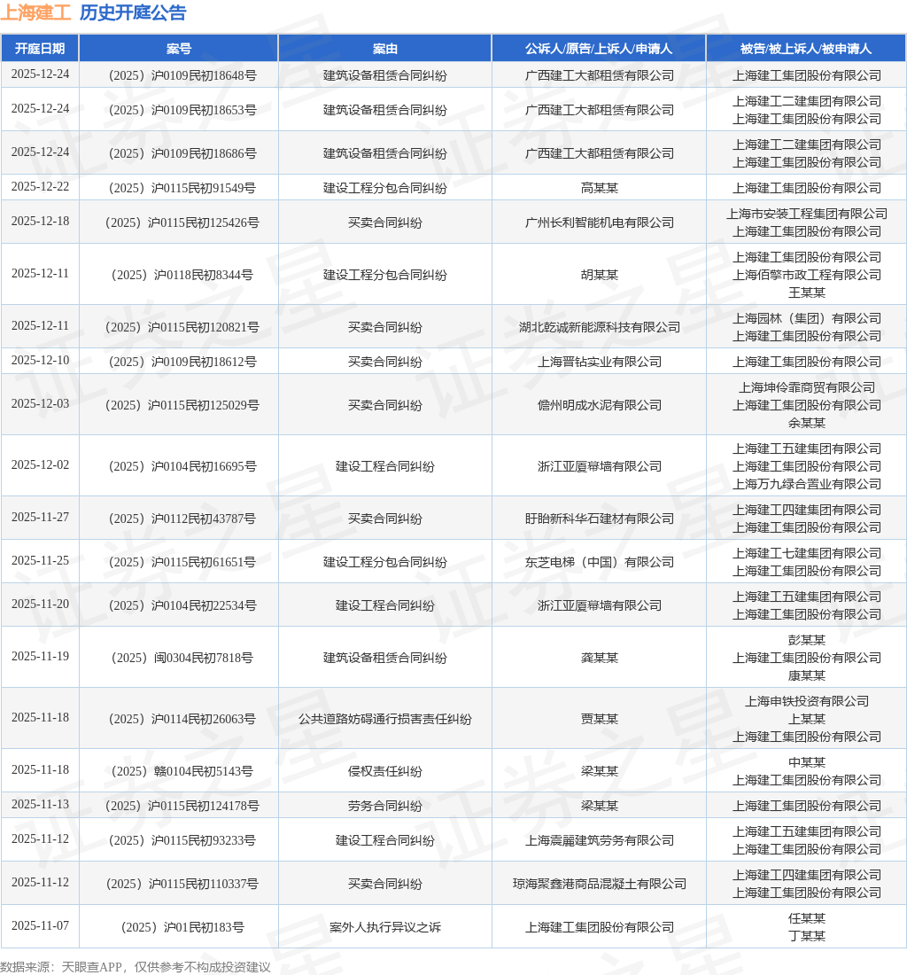 证券之星消息,根据天眼查APP显示,近日公布了一则上海建工集团股份有限公司作为被告/被上诉人的开庭公告,详细内容如下: