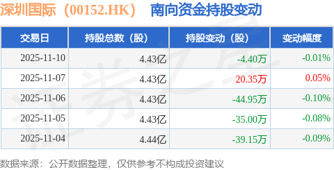 证券之星消息,11月10日南向资金减持4.4万股深圳国际(00152.HK)。近5个交易日中,获南向资金减持的有4天,累计净减持103.15万股。近20个交易日中,获南向资金减持的有15天,累计净减持540.55万股。截至目前,南向资金持有深圳国际(00152.HK)4.43亿股,占公司已发行普通股的18.13%。