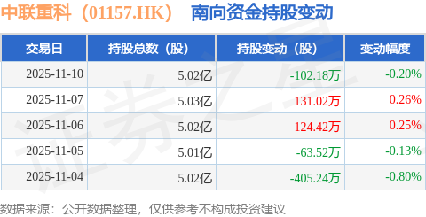 证券之星消息,11月10日南向资金减持102.18万股中联重科(01157.HK)。近5个交易日中,获南向资金减持的有3天,累计净减持315.5万股。近20个交易日中,获南向资金增持的有11天,累计净增持308.62万股。截至目前,南向资金持有中联重科(01157.HK)5.02亿股,占公司已发行普通股的32.35%。