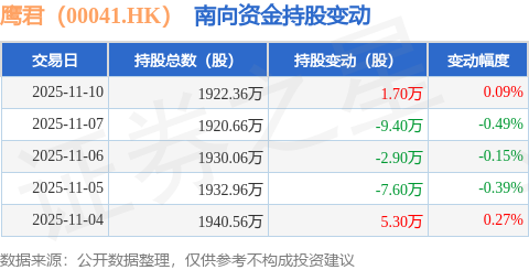 证券之星消息,11月10日南向资金增持1.7万股鹰君(00041.HK)。近5个交易日中,获南向资金减持的有3天,累计净减持12.9万股。近20个交易日中,获南向资金减持的有16天,累计净减持139.5万股。截至目前,南向资金持有鹰君(00041.HK)1922.36万股,占公司已发行普通股的2.56%。