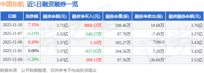 中国东航融资融券信息显示,融资方面,当日融资买入7632.55万元,融资偿还3764.02万元,融资净买入3868.53万元。融券方面,融券卖出15.02万股,融券偿还4.34万股,融券余量108.46万股,融券余额570.5万元。融资融券余额3.76亿元。