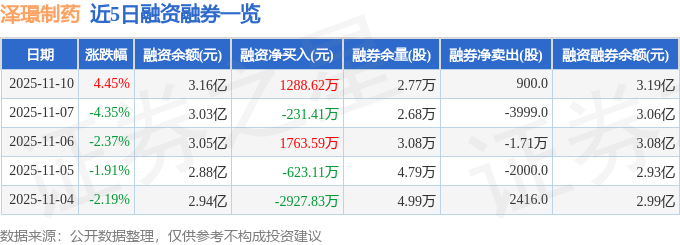 泽璟制药融资融券信息显示,融资方面,当日融资买入2938.63万元,融资偿还1650.01万元,融资净买入1288.62万元。融券方面,融券卖出900.0股,融券偿还0.0股,融券余量2.77万股,融券余额274.75万元。融资融券余额3.19亿元。