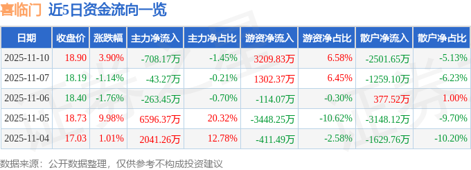 证券之星消息,截至2025年11月10日收盘,喜临门(603008)报收于18.9元,上涨3.9%,换手率7.12%,成交量26.21万手,成交额4.88亿元。