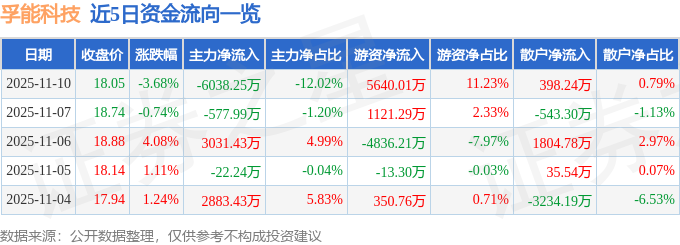 11月10日的资金流向数据方面,主力资金净流出6038.25万元,占总成交额12.02%,游资资金净流入5640.01万元,占总成交额11.23%,散户资金净流入398.24万元,占总成交额0.79%。