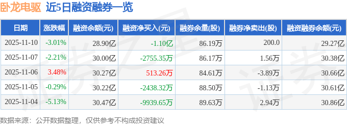 卧龙电驱融资融券信息显示,融资方面,当日融资买入1.98亿元,融资偿还3.08亿元,融资净偿还1.1亿元。融券方面,融券卖出200.0股,融券偿还0.0股,融券余量86.19万股,融券余额3744.18万元。融资融券余额29.27亿元。