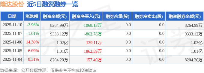 证券之星消息,截至2025年11月10日收盘,隆达股份(688231)报收于26.57元,下跌2.96%,换手率9.22%,成交量11.66万手,成交额3.07亿元。
