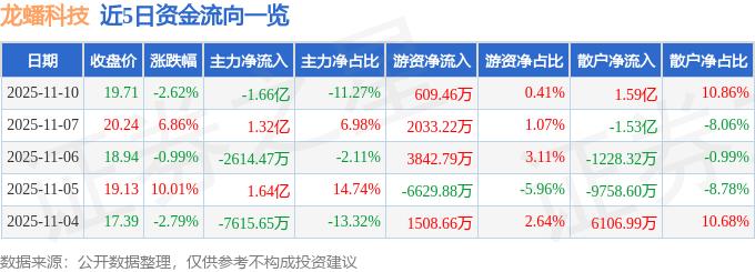 11月10日的资金流向数据方面,主力资金净流出1.66亿元,占总成交额11.27%,游资资金净流入609.46万元,占总成交额0.41%,散户资金净流入1.59亿元,占总成交额10.86%。