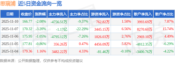 11月10日的资金流向数据方面,主力资金净流出4756.51万元,占总成交额9.37%,游资资金净流入762.82万元,占总成交额1.5%,散户资金净流入3993.69万元,占总成交额7.87%。