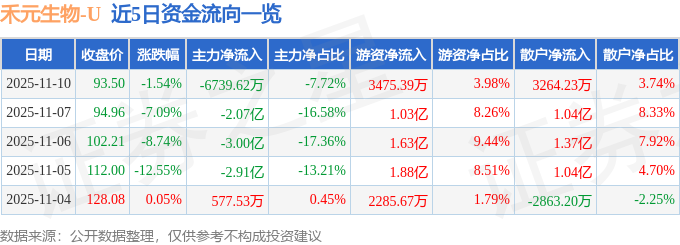 证券之星消息,截至2025年11月10日收盘,禾元生物(688765)报收于93.5元,下跌1.54%,换手率23.03%,成交量9.44万手,成交额8.73亿元。
