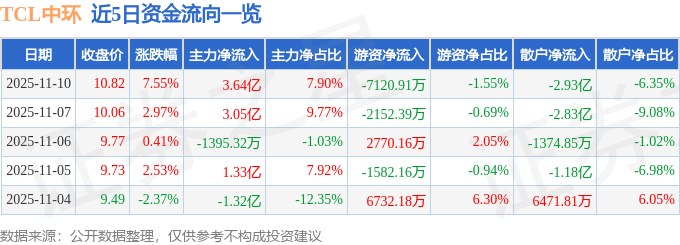 证券之星消息,截至2025年11月10日收盘,TCL中环(002129)报收于10.82元,上涨7.55%,换手率10.65%,成交量430.13万手,成交额46.08亿元。