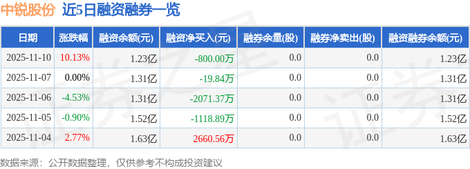 证券之星消息,截至2025年11月10日收盘,中锐股份(002374)报收于3.48元,上涨10.13%,涨停,换手率9.47%,成交量102.81万手,成交额3.43亿元。