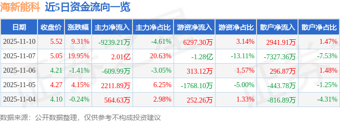证券之星消息,截至2025年11月10日收盘,海新能科(300072)报收于5.52元,上涨9.31%,换手率15.74%,成交量366.86万手,成交额20.02亿元。