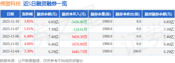 证券之星消息,截至2025年11月10日收盘,佛塑科技(000973)报收于10.79元,上涨3.85%,换手率21.8%,成交量210.95万手,成交额23.25亿元。