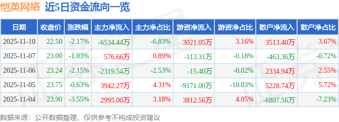 证券之星消息,截至2025年11月10日收盘,恺英网络(002517)报收于22.5元,下跌2.17%,换手率2.23%,成交量42.16万手,成交额9.57亿元。
