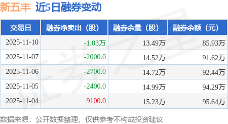 证券之星消息,11月10日,新五丰(600975)融资买入1298.11万元,融资偿还856.01万元,融资净买入442.11万元,融资余额2.17亿元。