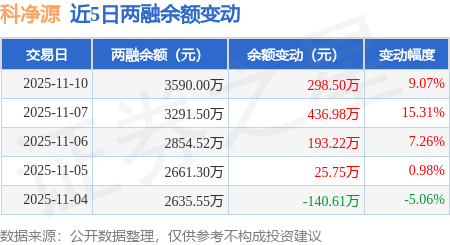 证券之星消息,11月10日,科净源(301372)融资买入950.87万元,融资偿还652.37万元,融资净买入298.5万元,融资余额3590.0万元,近3个交易日已连续净买入累计928.71万元。