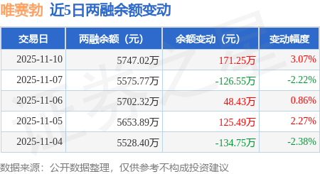 证券之星消息,11月10日,唯赛勃(688718)融资买入530.17万元,融资偿还358.92万元,融资净买入171.25万元,融资余额5747.02万元。