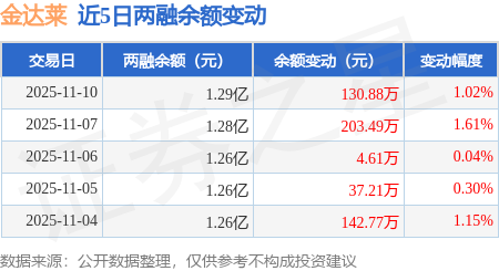 证券之星消息,11月10日,金达莱(688057)融资买入342.21万元,融资偿还211.33万元,融资净买入130.88万元,融资余额1.29亿元,近3个交易日已连续净买入累计338.97万元,近20个交易日中有12个交易日出现融资净买入。