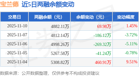 证券之星消息,11月10日,宝兰德(688058)融资买入338.99万元,融资偿还269.01万元,融资净买入69.98万元,融资余额4882.11万元。