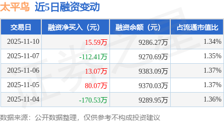 证券之星消息,11月10日,太平鸟(603877)融资买入360.14万元,融资偿还344.55万元,融资净买入15.59万元,融资余额9286.27万元。