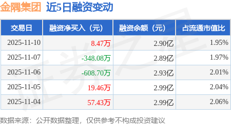 证券之星消息,11月10日,金隅集团(601992)融资买入918.06万元,融资偿还909.59万元,融资净买入8.47万元,融资余额2.9亿元。