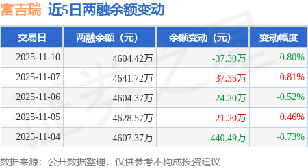证券之星消息,11月10日,富吉瑞(688272)融资买入169.61万元,融资偿还206.92万元,融资净卖出37.3万元,融资余额4604.42万元,近20个交易日中有12个交易日出现融资净买入。