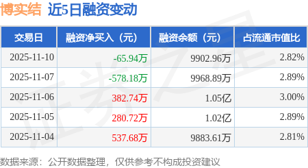 证券之星消息,11月10日,博实结(301608)融资买入862.23万元,融资偿还928.17万元,融资净卖出65.94万元,融资余额9902.96万元。