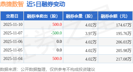 证券之星消息,11月10日,鼎捷数智(300378)融资买入1.76亿元,融资偿还1.78亿元,融资净卖出121.81万元,融资余额10.49亿元。
