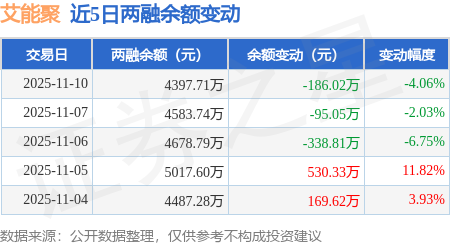 证券之星消息,11月10日,艾能聚(920770)融资买入1061.54万元,融资偿还1247.56万元,融资净卖出186.02万元,融资余额4397.71万元。