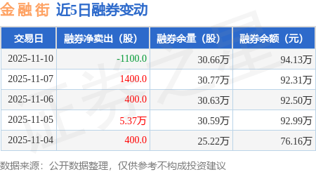 证券之星消息,11月10日,金 融 街(000402)融资买入1380.53万元,融资偿还1905.17万元,融资净卖出524.64万元,融资余额4.09亿元。