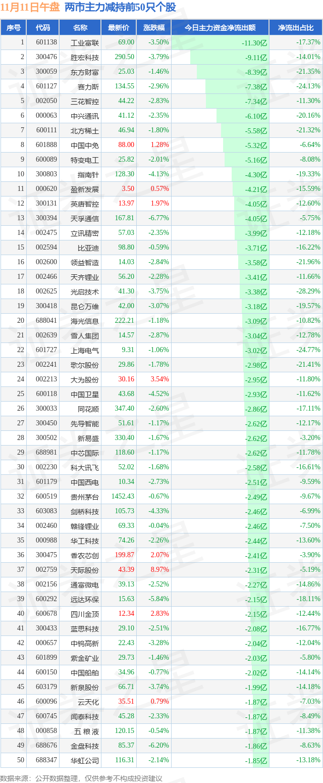 两市主力减持最多的前十只个股为: