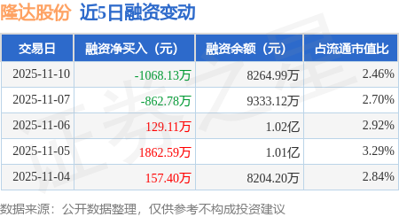 证券之星消息,11月10日,隆达股份(688231)融资买入2262.35万元,融资偿还3330.48万元,融资净卖出1068.13万元,融资余额8264.99万元。