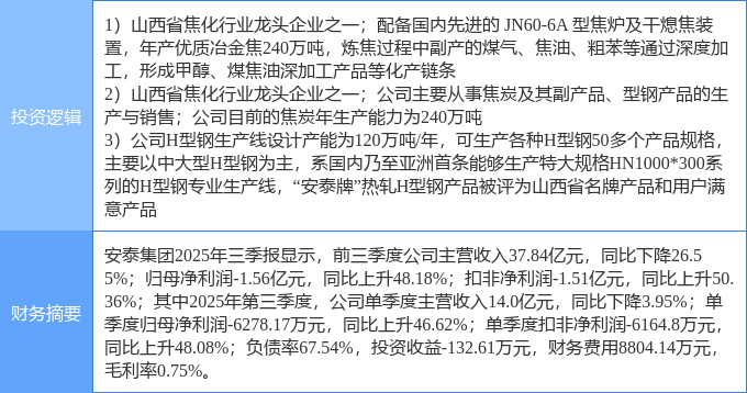 证券之星消息,安泰集团11月11日涨停收盘,收盘价4.7元。该股于14点43分涨停,2次打开涨停,截止收盘封单资金为1028.03万元,占其流通市值0.22%。