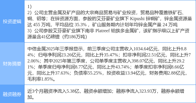 该股为有色 · 锌,有色金属,有色 · 镍概念热股,当日有色 · 锌概念上涨1.49%,有色金属概念上涨0.6%,有色 · 镍概念上涨0.41%。